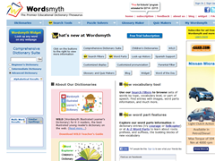 Wordsmyth. The Premier Educational Dictionary - Thesaurus. Free online dictionary with definitions written at three levels, synonyms, antonyms, examples, images, audio, semantic relations index. Look up any word. Create your own glossaries and quizzes. Use special tools to create and solve crosswords and solve anagrams. Reverse dictionary search in definitions, examples, synonyms and other fields.